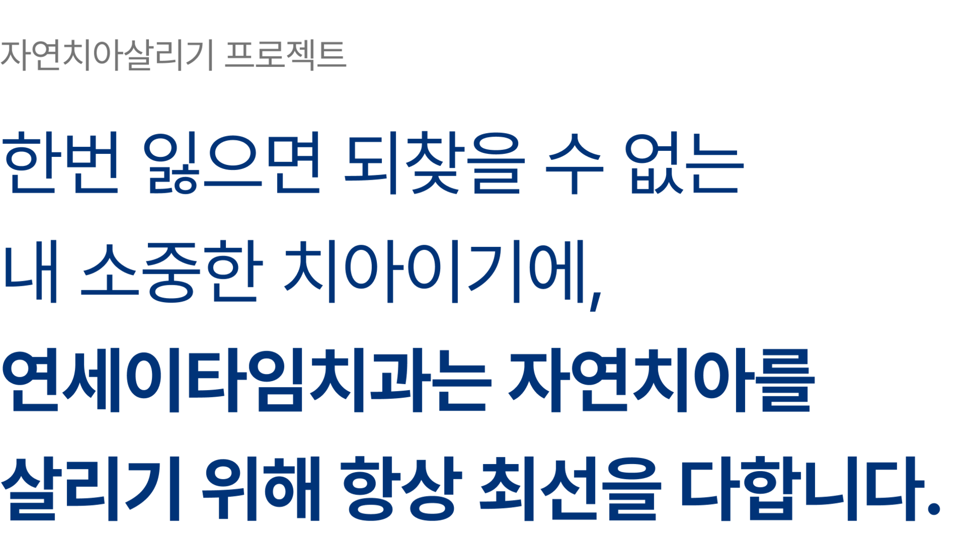 한번 잃으면 되찾을 수 없는내 소중한 치아이기에,연세이타임치과는 자연치아를살리기 위해 항상 최선을 다합니다.